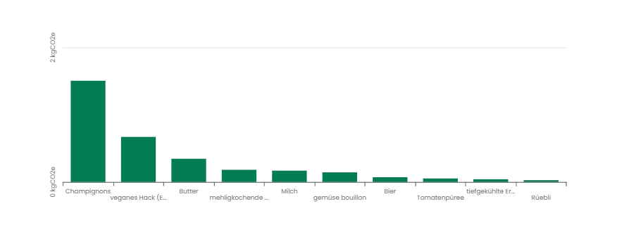 Das entspricht einer CO2 Reduktion von rund 80 % – bei gleicher Portionsgrösse und unveränderter Zubereitungsart. Der grösste Emissionstreiber im klassischen Rezept ist das Hackfleisch, das den CO2 Fussabdruck dominiert.